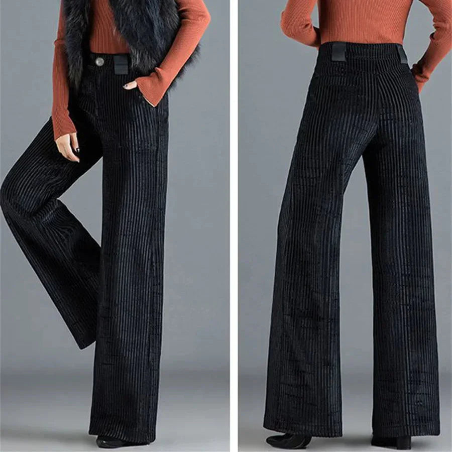 Step into the '70s revival with these statement-making corduroy palazzo pants. The plush cotton-blend fabric creates clean vertical lines that elongate your silhouette, while the high-rise waist and dramatic flare combine retro charm with modern sophistication.