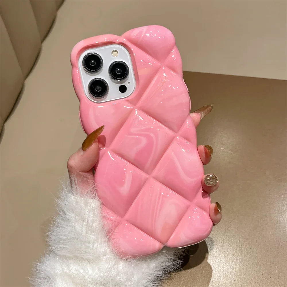 Like a shimmering pearl caught in morning light, this dimensional phone case captures ethereal marble swirls in soft pastels. The quilted surface creates a luxurious tactile experience while providing cushioned protection. Each case features unique marbling patterns that shift and flow across the protective shell.
