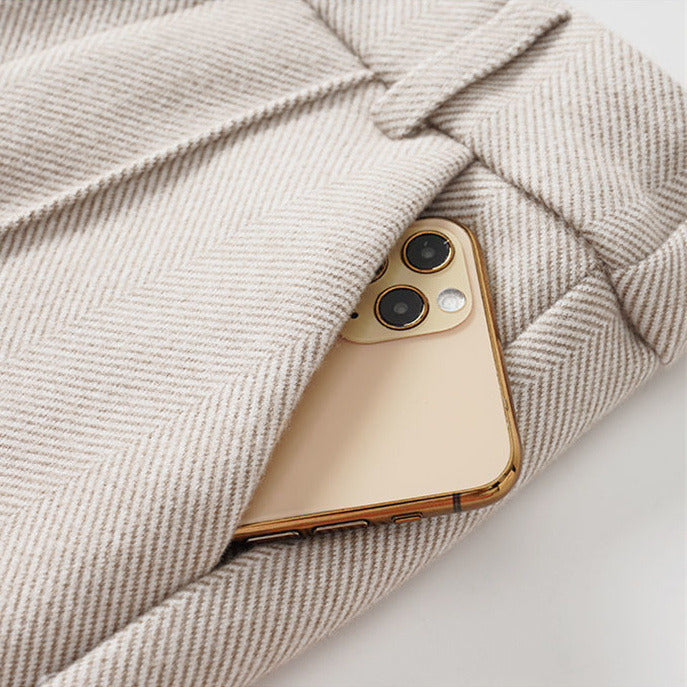 Combining comfort with style, the Lyra Tailored Pants feature a soft cotton fabric and a subtle herringbone pattern for breathable, refined wear.